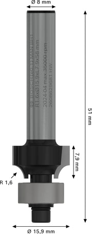 Bosch PRO Router Bit Rounding Over, R1.6, Shan