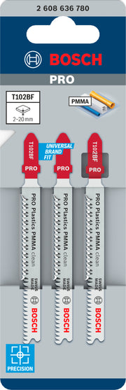 - Need a reliable jigsaw blade to get clean, straight cuts in abrasive thermoplastic materials, such as acrylic? Try the PRO Plastics PMMA clean T102BF