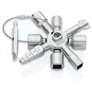 - Multifunctional key for the actuation of locking systems from the areas of facilities engineering (heating and plumbing, air conditioning, electrical technology), gas and water supply, and shut-off-systems.