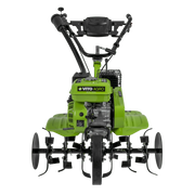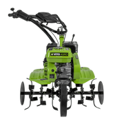- 7hp, 208cc Petrol-powered tiller with a rotation speed 3600rpm, it has a 4-stroke, 3-speed engine and a 3.6L fuel tank.