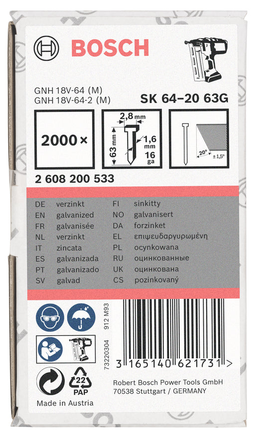 View full detailsProduct Overview: The 20 Degree 1.6/16g Finish Nails are designed for use within indoor usage class 1 (DIN EN 1995-1-1) The nails are galvanised fo...
