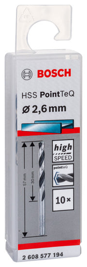 • The HSS Twist Drill Bit PointTeQ enables fast drilling in metal due to its PointTeQ tip design