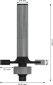 - Disc cutter, 8 mm, D1 32 mm, W 3 mm, G 51 mm: Grooving on narrow edges