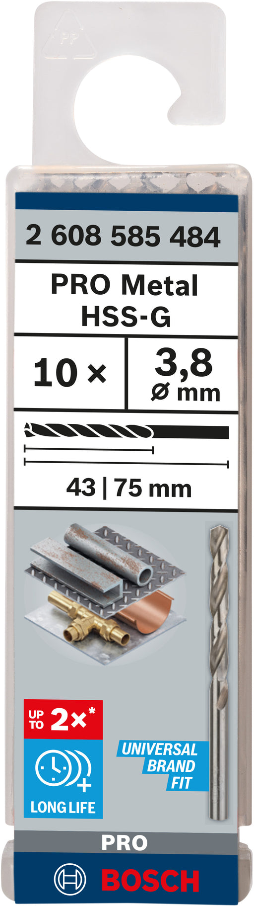View full detailsProduct Overview: Drill Bit 3.8 x 43 x 75 mm PRO Stainless Steel HSS-Co Metal Drill Bit, 3.8 x 43 x 75 mm, 10-Pack: Designed for drilling stainless...