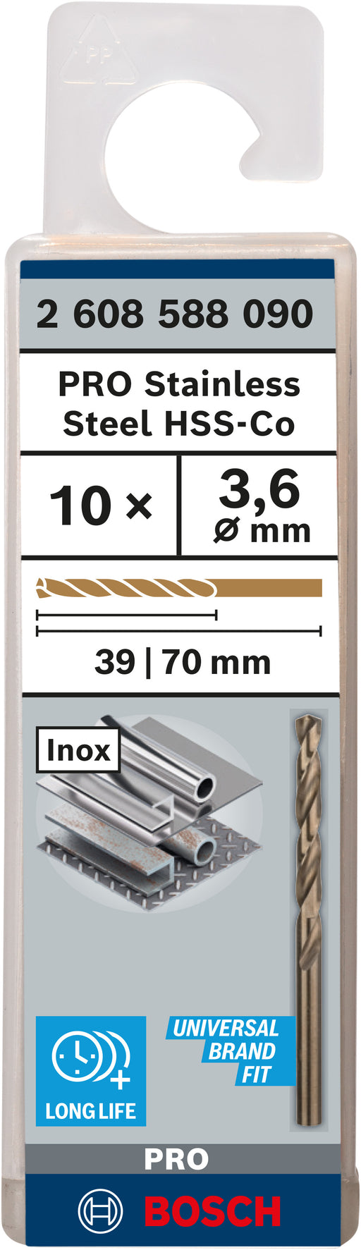 View full detailsProduct Overview: Drill Bit 3.6 x 39 x 70 mm PRO Stainless Steel HSS-Co Metal Drill Bit, 3.6 x 39 x 70 mm, 10-Pack: Designed for drilling stainless...