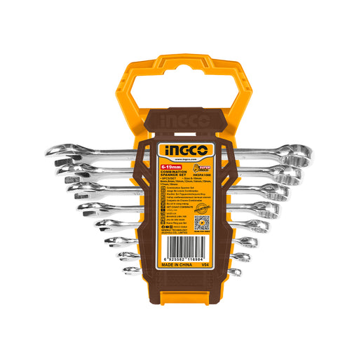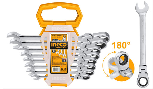 Product Overview: 8 Open-End & Ring Wrenches with Articulated Ratchet 60 to 72 Teeth Chrome-vanadium steel body Cr-V. 8 Wrenches: 6x6, 8x8, 10x...