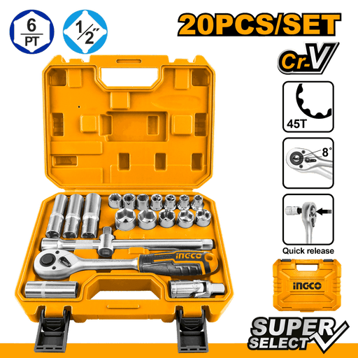 Product Overview: Set of Wrenches with Ratchet 1/2” 45 Teeth 20 Pieces.