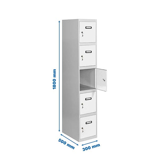 View full detailsProduct Overview: Single-body metal locker with 5 gray doors and white doors. Dimensions are 1800x300x500mm. It is delivered disassembled and inclu...