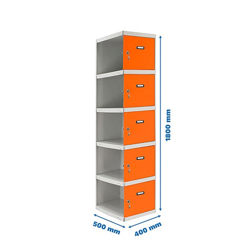 View full detailsProduct Overview: Single-section metal locker with 5 gray doors and orange doors. Dimensions are 1800x400x500mm. It is delivered disassembled and i...