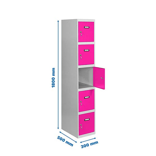 View full detailsProduct Overview: Single-section metal locker with 5 gray doors and pink doors. Dimensions are 1800x300x500mm. It is delivered disassembled and inc...