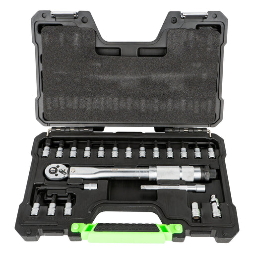 View full detailsProduct Overview: Professional torque wrench tool set with ratchet function and different types of bits: Contains 1/4" tools: x17 driver heads. sta...