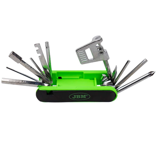 Product Overview: A multifunctional bicycle repair tool. 1x cross-tip 7x hexagon sockets: 2/2.5/3/4/5/6/8 mm 1x slot screwdriver 1x chain tool 2x t...