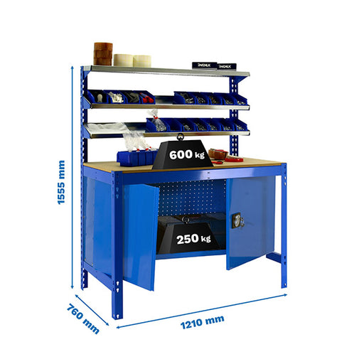 View full detailsProduct Overview: Blue/wood metal workbench with a load capacity of 600 kg. Dimensions (height x width x depth) are 1445 x 1210 x 610 mm. Includes ...