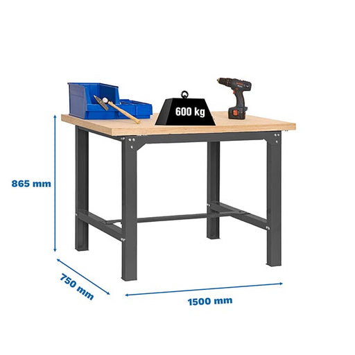 View full detailsProduct Overview: Workbench with screws and a 35 mm MDF tray. Anthracite/MDF color. This workbench measures 865 x 1500 x 750 mm. It has a load capa...