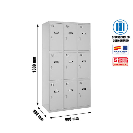 View full detailsProduct Overview: GRAY/WHITE metal locker with dimensions (H x W x L): 1800 x 900 x 500 mm. Delivered disassembled. It has 3 sections and 9 doors. ...
