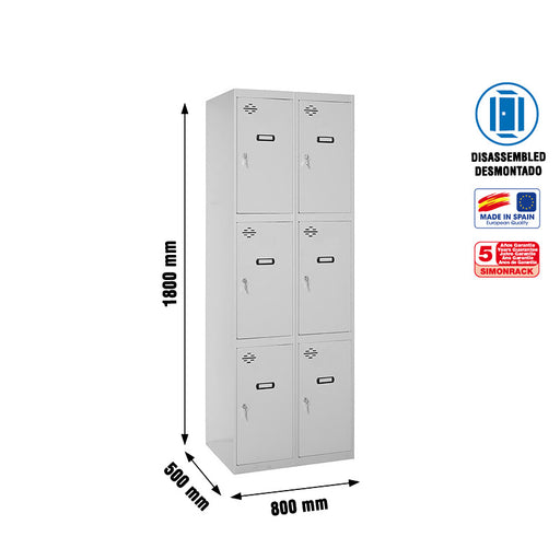 View full detailsProduct Overview: Gray metal locker with 2 sections and 6 doors. Delivered unassembled. Starter module. Easy to assemble by following the instructi...