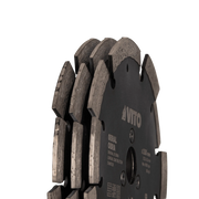 - VITO`s 3-in-1 General construction Segmented Diamond Disc is suitable for dry cutting in masonry work (stone blocks, bricks, concrete) and can be used on the Wall Chaser, VIMAR2400.