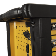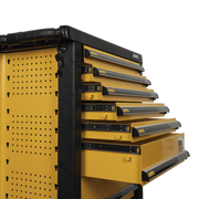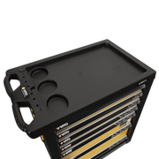 • This roller cabinet with 5 drawers of 65 mm, 1 drawer 135 mm and a maximum weight of 35 kg, 1 drawer 20 Tool trolley with 7 drawers for greater space organisation.