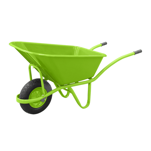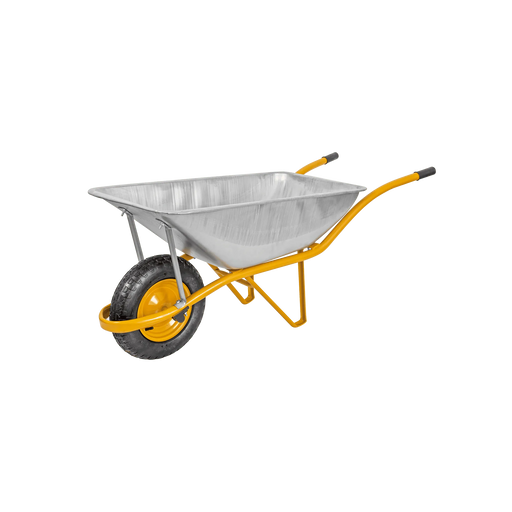 Product Overview: Wheelbarrow with pneumatic wheel, 85 L capacity, wheel guard and square tray. Wheelbarrow with pneumatic wheel, 85 L capacity, wh...