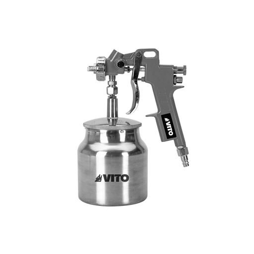 Product Overview: Suction feed spray gun, with a pressure of 3-5 bar. 1L Cup capacity, 3-5bar Pressure, 1/4 6mm Air Inlet Thread, Quick-release cou...