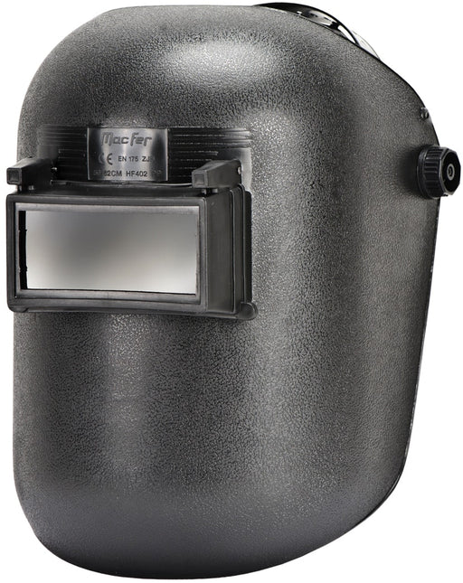 Product Overview: Hand-held Welding Mask made of Polypropylene, with a Glass visor, with 108 x 51 mm lenses, with incline angle adjustment included...