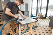 - The cordless circular saw is compatible with the Bosch guide rail system for precise sawing and also with the guide rail systems of Mafell, Festool, and Makita