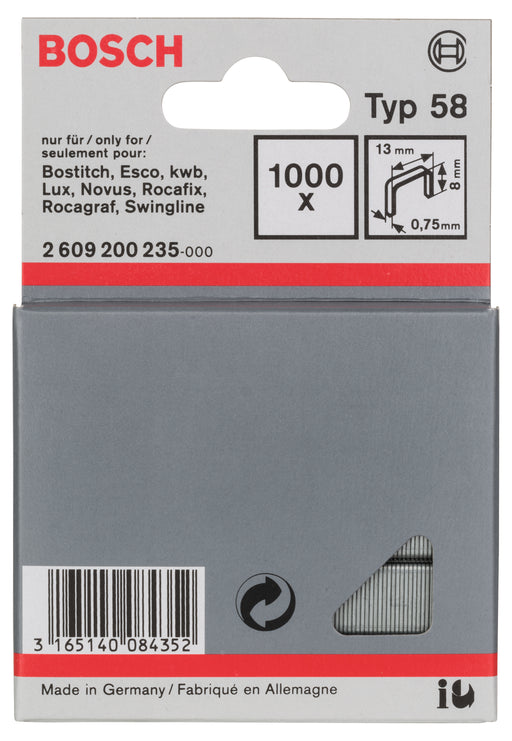View full detailsProduct Overview: Stapler staples 13 x 0.75 x 8 mm Fine wire staple, type 58: For stapling thin materials. Technical Details: Specification: 13 x 0...
