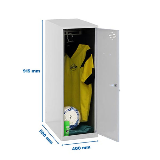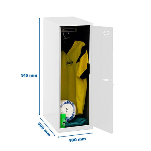 Product Overview: Mini metal locker in WHITE with a WHITE door. Dimensions are 915x400x500mm. It is delivered assembled and includes a vent to keep...