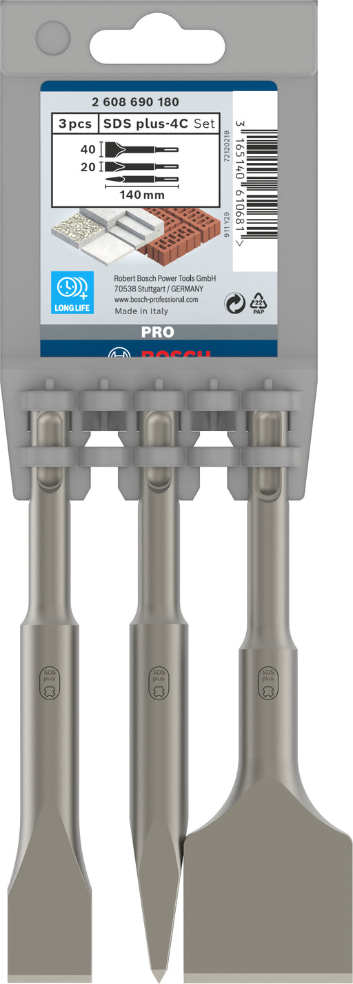 View full detailsProduct Overview: Demolition and construction workers will benefit from the PRO SDS plus-4C Chisel Set It includes long-lasting PRO SDS plus-4C poi...