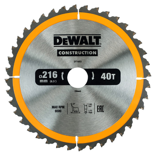 Dewalt (DT1953-QZ) 216mm x 30mm 40T Circular Saw Blade