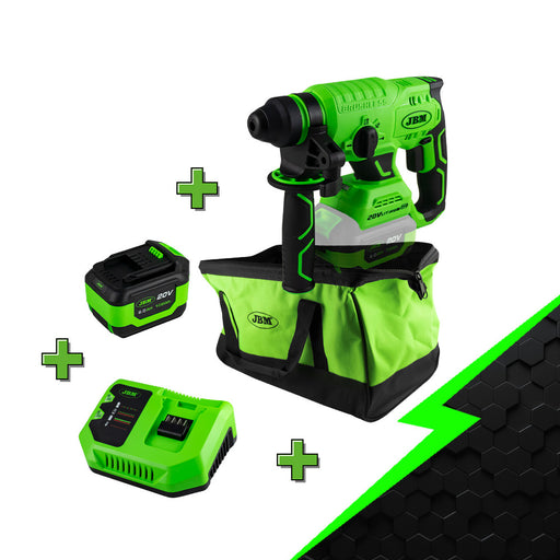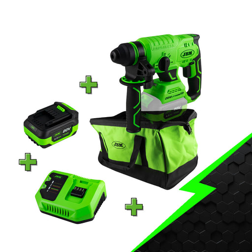 View full detailsProduct Overview: Promotional set composed of: 60023: BRUSHLESS ROTARY HAMMER ref. 60023 60013: 4.0 Ah LI-ION BATTERY 60016: 20V CHARGER 53782: ELE...