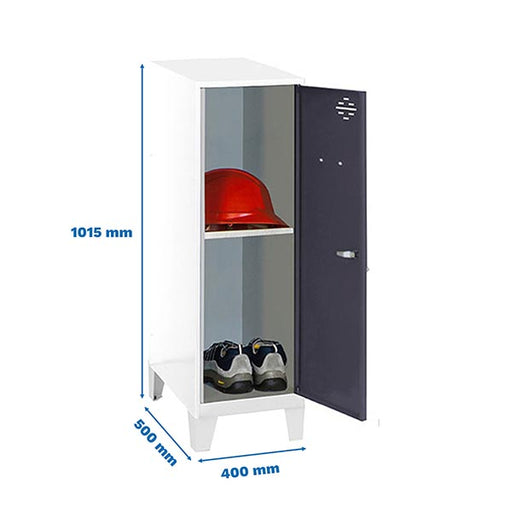 Product Overview: Mini metal locker with WHITE legs and ANTHRACITE doors. Dimensions are 1015 x 400 x 500 mm. It is delivered disassembled and incl...