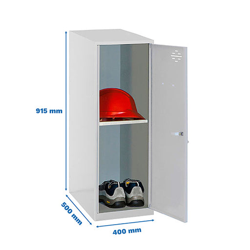 Product Overview: Mini metal locker in LOCKER GREY and GRAY door. Dimensions are 915x400x500mm. It is delivered unassembled and includes a vent to ...