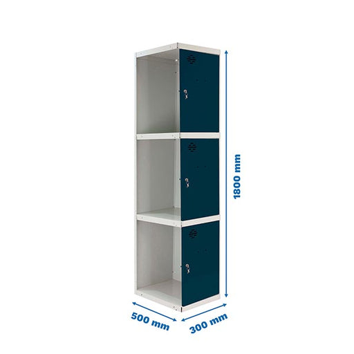 View full detailsProduct Overview: Single-section metal locker with three gray doors and blue doors. Dimensions are 1800x300x500mm. It is delivered disassembled and...