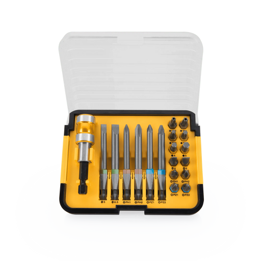 Product Overview: Set of 19 bits Set of S2 steel bits with 19 pieces, 1 adapter and 18 bits. More information available on datasheet (download bell...