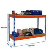 - Metal workbench with screwless assembly and two chipboard shelves. Each shelf supports up to 400 kg. Safe handling, no sharp edges. Ideal for a workshop or storage room. Made in Spain. Product