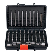 38-Piece Screwdriver Set: 16 x 25mm screwdriver bits, 9 x 50mm screwdriver bits, 7 x 75mm screwdriver bits, 1 x magnetic bit adapter, 5 x sockets (5, 6, 8, 10, and 12 mm). Includes sockets for small screws and nuts. Features Product Type: Screwdriver Set Number of Accessories: 38