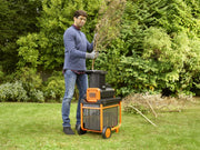 This wood chipper features a roller cutting system and is very quiet. It has a top feed and a forward/reverse button to prevent jams. It can shred branches up to 45 mm in diameter and has a 45 L waste storage tank. Thanks to its safety switch, the motor stops working when the tank is opened. It has large wheels for easy transport. 2800W wood chipper for cutting branches up to 45 mm in diameter 2800W motor Silent wood chipper 45 L tank capacity. Reduces emptying time Overload switch protects the tool from possible jams Safety switch stops the motor if the container is not properly closed Integrated collection container for easy waste storage Use the compost for planters, decorative areas, or play areas Features Product Type: Shredder Power Levels: 2800 W Integral Handle: Yes Waste Tray: Box (45 L) Integral Carrying Case: WITHOUT Tools Cutting Diameter: 45 mm Cutting Method: Cutting and Shredding Assembly Tools: Included Blade Material: Metal Reversible Blade: Yes Weight: 28.5 kg