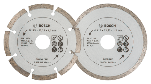 Descripción general del producto: Incluye: 2 discos de corte de diamante, Ø 115 mm