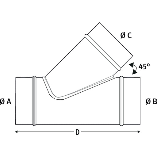 Descripción Datos técnicos Información de transporte Salida 45° Diámetro (A) 200 mm Diámetro (B) 200 mm Diámetro (C)...