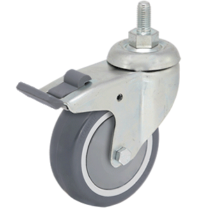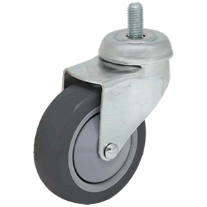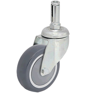 Ver todos los detallesCaracterísticas: Rueda giratoria, soporte de acero estampado con dos pistas de rodamientos de bolas, zincado. Rueda de caucho inyectado gris, núcle...