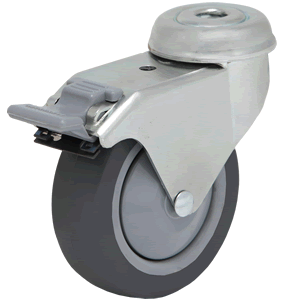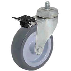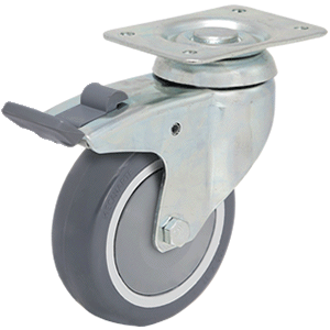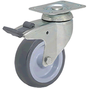 Características: Rueda giratoria con freno, con dos pistas de rodamientos de bolas, soporte de acero estampado, zincado brillante. Rueda de goma in...