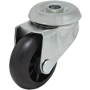 Características: Rueda de goma negra, llanta de metal cincado, con buje liso de poliamida. Más información en el catálogo disponible para descargar.
