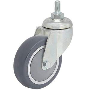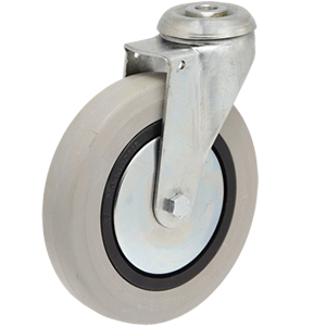 Ver todos los detallesCaracterísticas: Rueda giratoria, soporte de acero estampado con dos pistas de rodamiento de bolas, zincado. Rueda de caucho gris, núcleo de polipr...