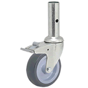 Características: Rueda giratoria con freno (bloqueo simultáneo), soporte de acero estampado con dos pistas de rodamientos de bolas, galvanizado. Ru...