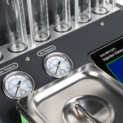 • Para la limpieza de inyectores, utiliza tecnología ultrasónica, asegurando la eliminación completa de depósitos tanto en inyectores de gasolina como de diésel.