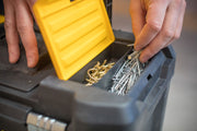 - Caja de herramientas superior de 45 cm (18") con organizadores en la tapa para piezas pequeñas y cierres metálicos geométricos con llave para mayor seguridad.