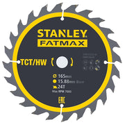 Hoja de sierra circular de precisión Stanley (STA15325-XJ) FATMAX® 24T, 165 x 15,8 mm
