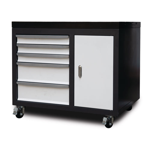 Descripción general del producto: Mesa de sujeción con ranuras en T de 16 mm de ancho Chasis robusto con cuatro ruedas giratorias EAN: 403...