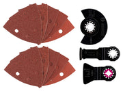 - El juego de 13 piezas incluye hojas para serrar, cortar por inmersión, lijar y raspar diversos materiales.